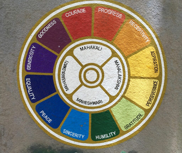The Mother’s symbol of the twelve attributes — sincerity, humility, gratitude, perseverance, aspiration, receptivity, progress, courage, goodness, generosity, equality and peace — provide the direction for befriending and guiding the mind to work towards ensuring our well-being and also of all the collectives we are part of.